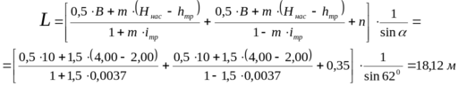 m – коэффициент заложения откосов насыпи, равный 1,5;