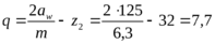 x= (aw/m) – 0,5·(z2 + q) = 125/6,3 – 20 = –0,16 (27)