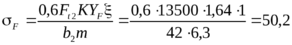где YF – коэффициент формы зуба, который определяется по эквивалентному числу зубьев колеса zv2=z2/cos3=35 YF = 1,64 [2, c.28]; – коэффициент, учитывающий износ зубьев, =1.