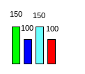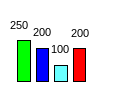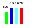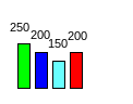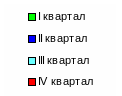 Рис. 3. Схема маршрута (В - Г - Д - Е) с диаграммами грузопотоков. На диаграммах обозначены: количество грузов, ежемесячно перерабатываемых терминалами, в тоннах (цифры сверху), распределенных по кварталам года (цифры снизу).