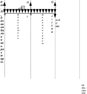 Рис. 24. Крайние положения балки с нагрузкой и без нее.