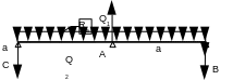 В качестве исходных возьмем следующие величины: значение равномерно распределенной нагрузки q=200 Н/м, длина одного пролета балки а=1.55 м, вес лебедки Q1=150 Н, максимальный вес поднимаемого груза Q2=2500 H.
