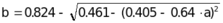 b=0.824-sqrt(0.461-(0.405-0.64*a)^2)