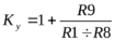 Коэффициент усиления задаётся резисторами R1, R2, R3, R4, R5, R6, R7, R8 и R9: