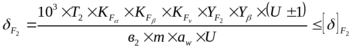[]F2 – допускаемое напряжение изгиба для материала колеса, МПа (см. п. 3.3).