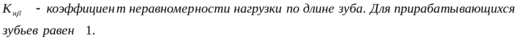 - коэффициент, учитывающий распределение нагрузки по ширине венца, для прирабатывающихся колес равен 1;
