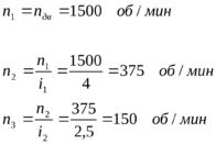 2.9. Зная частные передаточные отношения определяем частоту вращения каждого вала: