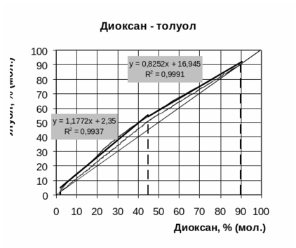 где MД=88, MТ=92 – мольные массы диоксана и толуола.