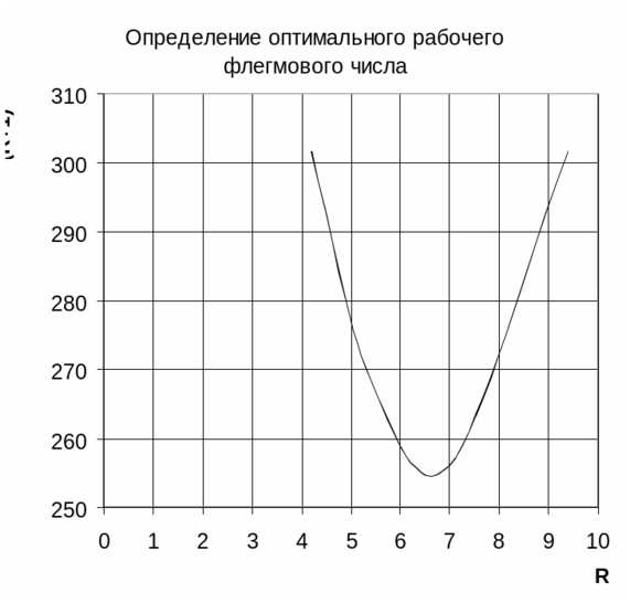Минимальное произведение N(R+1) соответствует флегмовому числу R=6,6 (из рис.3.2).