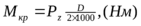 где Рz - главная составляющая (касательная) силы резания, Н; D - диаметр фрезы, мм.