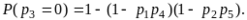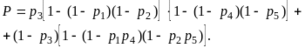 Вероятность безотказной работы мостиковой схемы (рис. 3.2, б) при разложении относительно диагональных элементов 3 и 6 по (3.31) определится: