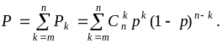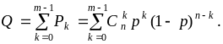 Поскольку для отказа системы “m из n“ достаточно, чтобы количество исправных элементов было меньше m, вероятность отказа может быть найдена по теореме сложения вероятностей для k = 0, 1, ... (m-1):