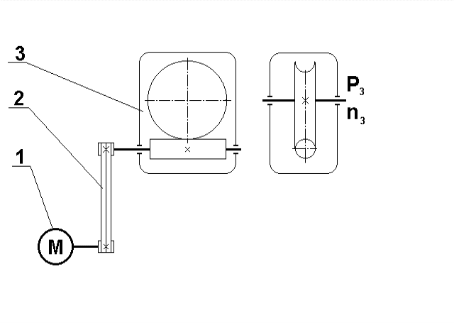 | Раздел 2 Расчетная часть 2.1 Выбор электродвигателя, кинематический и силовой расчет Исходные данные: Частота вращения вала барабана:30об/мин Мощность на валу барабана:Р=4.5 кВт Количество передаточных звеньев привода: 2 Количество пар подшипников: 2 Количество валов: 3 Коэффициент учитывающий потери в одной паре подшипников:0.99 Параметры 1-го вала Параметры цилиндрического редуктора Максимальное передаточное число звена Umax = 4 Минимальное передаточное число звена Umin = 2 К.П.Д. звена 0.7 Параметры 2-го вала Параметры червячной передачи. Umax =40 Umin =8 К.П.Д.=0.7 Требуемая мощность электродвигателя: Выбираем асинхронный 132M2 у которого мощность 3 кВт Диапазоны частот вращения вала электродвигателя 480-4800 об/мин Величина скольжения: 0.023 Фактическая частота вращения Действительное передаточное число:97.6999 Разбиваем действительное передаточное число между звеньями и получаем Uред = 30 , Uрем=3.26 Вал 1 Передаточное число 1 К.П.Д. 1 Число пар подшипников на валу-0 Частота вращения вала 2931 об/мин Мощность на валу 9.37013912 кВт Вращающий момент на валу 30.54371261 Н*м Вал 2 Передаточное число 3.26 К.П.Д. 0.95 Число пар подшипников на валу 1 Частота вращения вала 900 об/мин Мощность на валу 8.81261539 кВт Вращающий момент на валу 93.55217743 Н*м Вал3 Передаточное число 30 К.П.Д. 0.7 Число пар подшипников на валу 1 Частота вращения вала 30.089об/мин Мощность на валу 4.5 кВт Вращающий момент на валу 1944.9498Н*м | ||||||