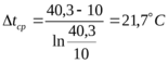 Пусть охлаждающая вода в теплообменнике нагревается с 20С до 25С. Тогда средняя разность температур:
