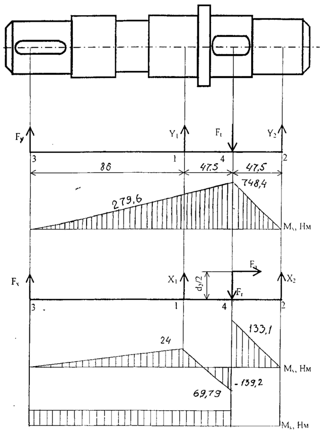 Мх = 3250,65 * 86 * 0,001 = 279,6 Нм