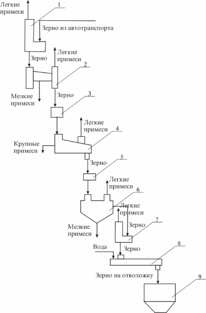 После уборки урожая зерно содержит различные посторонние примеси. В зерне могут находится семена сорных растений, соломистые частицы, обмолоченные колосья и даже кусочки земли или мелкие камешки (галька). При перевозке и различных операциях с зерном в него могут попасть и другие предметы, кусочки проволоки, различные металлические предметы, веревка, стекло и т.п. Все это нежелательные примеси и все это необходимо удалить из зерна до его измельчения в муку.