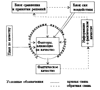 Объект управления – качество продукции. Иногда в качестве объекта выступает конкурентоспособность, технический уровень или какой либо другой показатель, характеристика. Как объект управления может выступать либо вся совокупность свойств продукции, либо какая то их часть, группа или отдельное свойство.