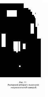 Выносная нагревательная камера 1 легко отделяется от корпуса аппарата, что облегчает и ускоряет ее чистку и ремонт. Ревизию и ремонт нагревательной камеры можно производить без полной остановки аппарата (а лишь при снижении его производительности), если присоединить к его корпусу две камеры.
