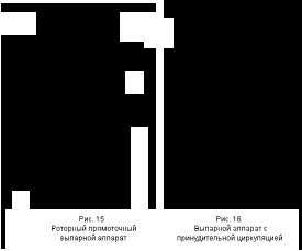 В роторных прямоточных аппаратах достигается интенсивный теплообмен при небольшом уносе жидкости вторичным паром. Вместе с тем роторные аппараты сложны в изготовлении и отличаются относительно высокой стоимостью эксплуатации, вследствие наличия вращающихся частей (ротора) Имеется несколько разновидностей роторных прямоточных выпарных аппаратов, в том числе аппараты с горизонтальным корпусом.