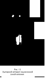 Прямоточные аппараты чувствительны к изменению режима работы и требуют для эффективного выпаривания поддерживания некоторого оптимального «кажущегося» уровня раствора в кипятильных трубах. «Кажущийся» уровень соответствует высоте столба холодного раствора, которым может быть уравновешен столб парожидкостной смеси в трубах. При «кажущемся» уровне ниже оптимального верхняя часть поверхности труб не омывается жидкостью и практически не участвует в теплообмене; «оголенная» часть поверхности труб при испарении на ней брызг жидкости покрывается накипью При «кажущемся» уровне выше оптимального на большей части поверхности труб раствор только нагревается; соответственно уменьшается высота зоны кипения, где теплопередача интенсивнее; это приводит к снижению средней величины коэффициента теплопередачи. Кроме того, для вертикальных прямоточных аппаратов необходимы высокие производственные помещения. Область применения аппаратов с поднимающейся пленкой - выпаривание маловязких растворов, в том числе пенящихся и чувствительных к высоким температурам. Эти аппараты не рекомендуются для выпаривания кристаллизующихся растворов ввиду возможности забивания труб кристаллами.