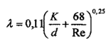 Σζ- сумма коэффициентов местных сопротивлений; Re - число Рейнольдса. Для стальных воздуховодов К=0,1 мм.