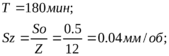 So=0.2мм/об; Sz=(0.23…0.5)мм/об;
