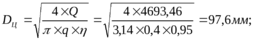 Диаметр гидроцилиндра определяется по формуле: