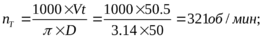 Определяем обороты шпинделя, соответствующие найденной скорости