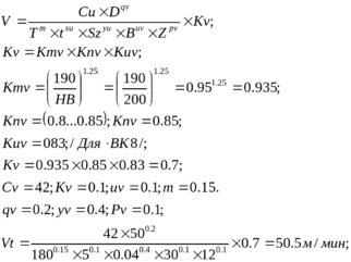Расчет режимов резания
