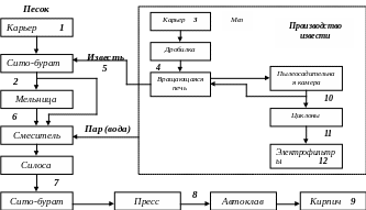 а рисунке 1 приведена технологическая карта радиационного мониторинга производства извести и силикатного кирпича.
