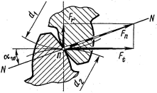 Вращение передаётся через зубчатое зацепление. Отказ или разрушение зубчатого колеса влечёт за собой прекращение передачи крутящего момента и отказ двигательных агрегатов. Наиболее загруженной частью зубчатого колеса является зуб. На рисунке 1 показана схема зацепления зубьев.