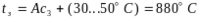 Далее деталь переносят в другую печь с температурой 880°С. Время окончательного подогрева рассчитывается аналогично времени подогрева по способу Смольникова [ ]: