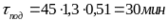 =1,3 мин/см[ ],W=0,51см (см. ранее). Следовательно, время подогрева детали составляет: