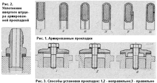 На рис. 2 показан пример применения армированной прокладки для уплотнения ввертного штуцера. Прокладки такого типа могут быть использованы многократно.