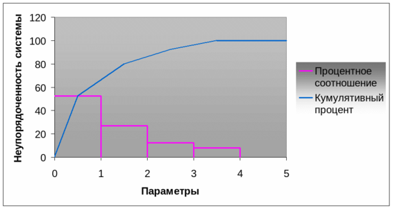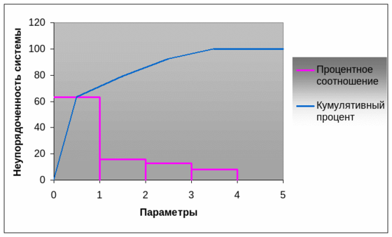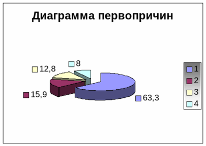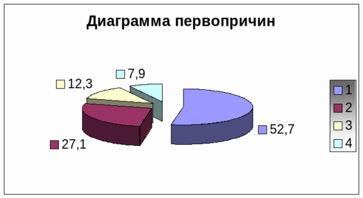 Далее необходимо выявить те первопричины, которые создают наибольшие трудности. Для этого используем диаграмму Парето. Она позволит осуществить распределение усилий и объективно представить фактическое положение дел в понятной и наглядной форме.