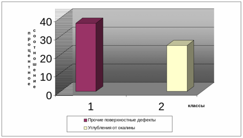 В данном случае диаграмма Парето отражает причины проблем, возникающих в ходе производства, и используется для выявления главной из них –наличия поверхностных дефектов.