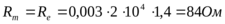 Rк, Ом, определили согласно /9, с.337/ по формуле