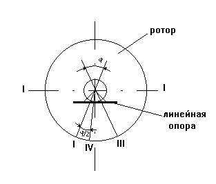 Если бы отсутствовали силы сопротивления, припятствующие качению рамки в опорах, то его сещенный центр тяжести располагался бы в самой нижней точки траектории движения, т.е. в нижней части вертикали, пересекающейся с осью вращения. В реальных условиях центр тяжести ротора будет находиться вблизи точки равновесия. Для установления положения смещенного центра тяжести на торцевой поверхности ротора, после того как он займет нулевой момент, наносится меловая черта 1 рис. 3.1, которая должна совпадать с вертикальной