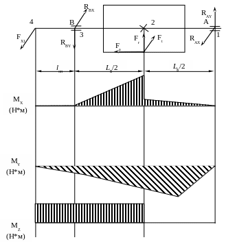 Рис.1 Эпюра моментов на быстроходном валу