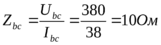 Зная напряжение и силу тока определяем полные сопротивления фаз, применяя закон Ома: