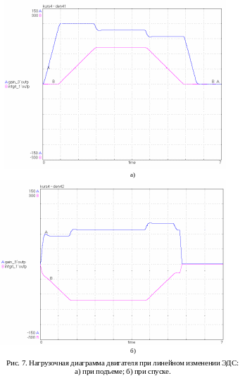 Рассчитаем нагрузочную диаграмму двигателя за цикл при линейном изменении ЭДС преобразователя.