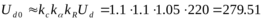 kR=1,05 – коэффициент запаса по напряжению, учитывающий падение напряжения в обмотках трансформатора, в вентилях и за счет перекрытия анодов;