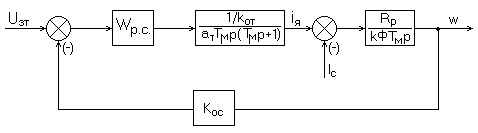 труктурная схема электропривода с внешним контуром регулирования скорости и внутренним контуром тока якоря изображена на рис. 13.
