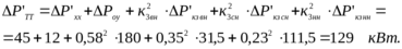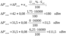 Приведенные потери мощности в одном трехобмоточном трансформаторе: