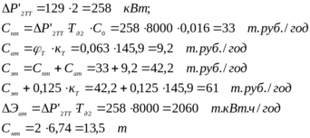 Потери мощности в двух трансформаторах ГПП: