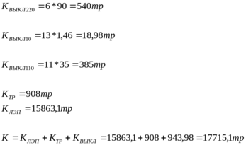 Кап. затраты на выключатели и трансформаторы не учитываем т.к. в обоих вариантах их количество и стоимость равные.