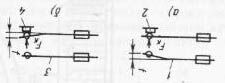 а) пружина 1 заранее изгибается на величину f и после контактирования с ответным контактом 2 выпрямляется, создавая определенное контактное давление Fк;