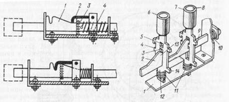 Рассмотрим некоторые конструкции переключателей, применяемых в различных механизмах.