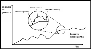 Зрозуміло, будь-який інвестиційний проект не може розглядатися у відриві від конкретного підприємства. Кожне підприємство під час свого життєвого циклу проходить різні стадії розвитку, які й обумовлюються тими проектами, які здійснює підприємство, а оперативна діяльність вже є похідною від цього процесу. Для кращого розуміння цього пропоную побудувати умовну модель життєвого циклу підприємства. (Мал.1)