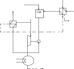 2.6 РАСЧЕТ ТУРБОПРИВОДА ПИТАТЕЛЬНОГО НАСОСА Расход свежего пара на турбину принимаем за единицу Д0=1, остальные потоки пара и воды выражаются в долях от Д0 Расход питательной воды Дпв=Д0+Дут Разделив это выражение на Д0, получим пв=1+ут, где: ут=Дут/Д0=0,01 – величина утечек пв=1+0,01=1,01 Доля отбора пара на турбопривод питательного насоса . ; где: кДж/кг; и - давление на выходе и входе питательного насоса соответственно =0,0011м /кг – среднее значение удельного объёма питательной воды кДж/кг; кДж/кг; кДж/кг; ; |